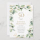 Cet exquis eucalyptus aquarelle avec des embellissements en feuille d'or et des points dorés 50e anniversaire invitation avec demande de carte est parfait pour célébrer votre femme, maman, soeur, tante, ami, grand-mère. Son design fleuri et doux est moderne mais traditionnel. Le dos a une demande magnifiquement formulée pour une carte et une coordination de l'eucalyptus. Sélectionnez Personnaliser ce modèle pour en faire le vôtre. En quelques secondes vous verrez vos incroyables invitations à la fête du 50e anniversaire.