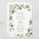 Cet exquis eucalyptus aquarelle avec des ornements en feuille d'or et des points éclaboussés d'or surprise 50ème anniversaire invitation avec demande de carte est parfait pour célébrer votre femme, maman, soeur, tante, ami, grand-mère. Son design fleuri et doux est moderne mais traditionnel. Sélectionnez Personnaliser ce modèle pour en faire le vôtre. En quelques secondes vous verrez vos incroyables invitations à la fête du 50e anniversaire.