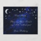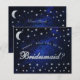 Elle comporte un texte jaune doré sur fond de ciel bleu marine, avec de fausses étoiles dorées et une lune. Le mot Demoiselle d'honneur sur le devant (qui est en faux doré) et le message au dos sont écrits dans un élégant script calligraphique, le texte arqué « [Nom] serez-vous ma » au-dessus du mot Demoiselle d'honneur en petites capitales.