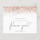 Rose Budget Parties scintillant Or Script Flower demande fille. Un prix économique 4,5 po x 5,6 po alternatif. Disponible dans un STOCK CARD SEMI GLOSS 110 lb qui est l'option par défaut (plus épais pour les invitations) Flower Girl est dans un script stylé est au centre. Une bordure de fausse parties scintillant en or rose est en haut de chaque côté.