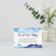 Faites glisser ces petites cartes dans vos invitations pour les douches pour bébés lorsque vous demandez des livres au lieu de cartes. Avec un design assorti dans des éclaboussures d'aquarelle bleue, un poème sucré explique la demande de livre. Personnalisez avec le nom de l'invité d'honneur et la date de la douche au dos de la carte.