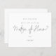 Minuscule noir de script de demande d'honneur. Un prix économique 4,5 po x 5,6 po alternatif. Disponible dans un STOCK CARD SEMI GLOSS 110 lb qui est l'option par défaut (plus épais pour les invitations) Les enveloppes sont en option et sont légèrement plus grandes que la taille de la carte. Style simple en noir et blanc classique pour poser cette question toute importante. Maid Of Honor est dans un élégant script est au centre. Les couleurs du texte et de l'arrière - plan peuvent être modifiées si vous souhaitez mieux convenir à votre thème mariage via l'option customiser plus loin.