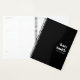 Planificateur noir minimal avec date de début flexible et disposition hebdomadaire/mensuelle propre. Parfait pour les kits d'embarquement, les cadeaux de clients ou les programmes de productivité d'entreprise en vrac.