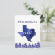 Une carte de l'État du Texas a été superposée avec une feuille de métal brossé bleu sur notre annonce colorée de changement d'adresse. Le texte sur le devant indique : « Nous avons déménagé au Texas », le nom de l'État étant en blanc sur la carte elle-même. La bordure inférieure de notre carte est un jardin de bleuets, la fleur de l'État du Texas. Tout le texte sur le devant et le dos de cette carte de nouvelle adresse frappante peut être facilement révisé sur le modèle de personnalisation.