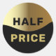Conception moderne d'autocollants ronds avec а cercle divisé en deux parties, dont l'une est en or et l'autre en noir. Le texte est entièrement personnalisable.