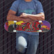 Ce drôle de crâne démon aux flammes embrasse sa guitare parce qu'il est possédé par l'esprit de Rock n'Roll.
