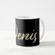 Une très belle tasse personnalisée / tasse à café / tasse à thé dans le whitegold Lettering Look en noir pour Denis.
