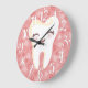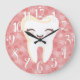 Cette horloge d'amusement comporte une dent adorable, souriant sur un arrière - plan rose des dents et des fleurs -- des nombres peuvent être facilement enlevés -- cliquez sur la PERSONNALISER pour ajouter votre propre texte ou logo !