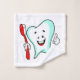 Serviettes avec l'illustration d'une grande dent blanche de style dessin animé souriant joyeusement en tenant une brosse à dents rouge et en donnant le signe pouce vers le haut.