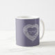 Dentelle mariage anniversaire tasse, personnaliser avec votre propre année de mariage, les noms et une photo dans le coeur. Exemple : 13e anniversaire de dentelle et vos dates. Dentelle effet coeur art et design par Sarah Trett pour www.mylittleeden.com sur zazzle.