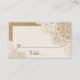 Elégante dentelle blanche sur burlap shabby chic carte mariage place avec dentelle blanche sur le lin burlap naturel ou hessian qui couvre deux coins d'un rectangle blanc avec bordure de burlap beige. Texte en marron. Notez que la dentelle et le burlap sont tous "imprimés" et non de vrais tissus. Ce design élégant, chic et romantique, chic et chic, à l'essence rustique, fait partie d'un ensemble mariage et est parfait pour un mariage rustique chic ou occidental printemps, été ou automne/automne avec une palette de couleurs neutres.