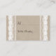Il s'agit de la carte de lieu de coordination pour la dentelle en blanc sur la ligne mariage Burlap. Il est également disponible avec dentelle d'ivoire. Note : la dentelle est une illustration photo.