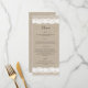 Cette dentelle blanche magnifiquement illustrée orne ce menu couleur burlap.