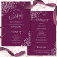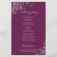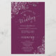 Ces programmes de mariage sont élégants et de bon goût, tout en étant toujours à l'aise avec le budget. Le design présente une dentelle fausse feuille gris argenté ornée avec du texte gris pâle sur un arrière - plan couleur cassis violet, magenta ou baie. La typographie présente une calligraphie de script dentée, et il y a de la place pour des détails sur la cérémonie, la fête de la mariée, et un bref merci.