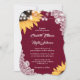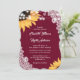 Cet élégant et romantique faire-part de mariage floral avec des tournesols contre un burlap et arrière - plan en dentelle est parfait pour inviter vos invités à votre mariage rustique bordeaux inspiré des tournesols. Facile à personnaliser le modèle. Conception entièrement personnalisable.