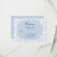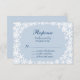 Des flocons de neige délicats dans un motif en dentelle, sur un arrière - plan bleu glacé, mettent en valeur cette RSVP de coordination pour la dentelle d'hiver sur le Faire-part de mariage bleu Icy. Il est montré sur le papier de base; cependant, je recommande le poids et la texture élégants du papier de lin, ou l'effet chatoyant du papier de glace métallique pour l'impression.