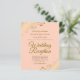Ces invitations de mariage abordables et abordables sont le choix parfait pour la classe, le style et la beauté sur un budget. Conçues pour les invités qui sont invités à la réception mais pas à la cérémonie, elles présentent un arrière - plan couleur pêche orange pâle ou corail avec des garnitures en dentelle dorée ornée de faux feuillages dans les coins. La typographie comprend des lettres en or fantaisie pour un style à la fois simple et élégant. Merveilleuse façon d'invitation vos amis et votre famille pour partager votre joie dans votre journée spéciale sans casser la banque.