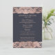 Dentelle d'or rose moderne, élégante et chic sur bleu marine, cartes de menu de réception de mariage. Ce design classique et sophistiqué est parfait pour une réception de mariage classe, élégante et branchée. Personnalisez avec votre propre menu sur le devant, avec vos noms et dates. Customisez ensuite le dos avec votre monogramme initial. Toute la conception d'impression photo.
