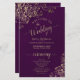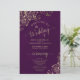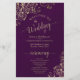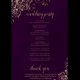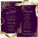 Ces programmes de mariage sont élégants et de bon goût, tout en étant toujours à l'aise avec le budget. Le design présente une dentelle dorée en faux feuille ornée de texte doré sur un arrière - plan violet de prune foncé. La typographie présente une calligraphie de script dentée, et il y a de la place pour des détails sur la cérémonie, la fête de la mariée, et un bref merci.