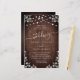 Cette invitation de mariage abordable présente de jolis graphismes en dentelle sur un arrière - plan rustique en bois foncé accentué de lumières à cordes. Cliquez sur le bouton personnaliser pour plus de flexibilité dans la modification du texte. Des variantes de cette conception, différents types de papier, ainsi que des produits de coordination sont disponibles dans notre boutique, zazzle.com/store/doodlelulu. Contactez-nous si vous avez besoin que cette conception s'applique à un produit spécifique pour créer votre propre article de correspondance unique! Merci tellement pour voir un DoodleLulu par 2 june conception de bogues!