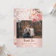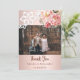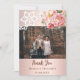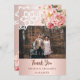 Un carte photo de Merci mariage moderne. Arrière - plan rose à dégradé d'or décoré de roses roses, de fleurs et de dentelle. Personnalisez et ajoutez votre photo à l'avant et merci note sur le dos.