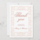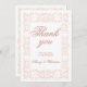 Dentelle blanche élégante et personnalisée sur carte de remerciements à cadre rose. Conçu dans un style sophistiqué avec dentelle ornementale avec des lettres roses avec une ombre rose plus foncée. Vous pouvez modifier le texte.