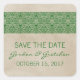 Dentelle rustique simple et élégante Enregistrer le Stickers Date avec un aspect papier texturé vintage arrière - plan et une bordure motif en dentelle douce et dainty en vert foncé. Facile à customiser, il suffit d'ajouter les détails de votre mariage. Cliquez sur "Customiser" pour trouver d'autres options de personnalisation.