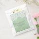 Simples et sophistiqués Elegant Lace Wedding Favor Sacs avec un motif de dentelle blanche sur un arrière - plan de papier vintage faux vert menthe clair. Ces sacs classiques et élégants sont parfaits pour un mariage rustique. Facile à customiser avec vos détails mariages. Cliquez sur "Customiser" pour trouver d'autres options de personnalisation.