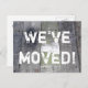 Cartes postales mobiles cool avec vieilles planches en bois en détresse. Panneaux de parquet avec goutte de peinture. Texte de déplacement personnalisé ; Nous avons déménagé ! Ajoutez votre nouvelle adresse à l'arrière. Cartes maison neuves modernes pour la maison et les affaires. Vieille conception de parquet sale.