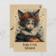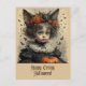 Souhaitez à vos amis un Halloween Déplaisant et heureux avec cette carte postale! La fille de l'ère victorienne aurait été mignonne si ce n'était pour les cheveux gris impair et la tiara chauve-souris avec oreilles déplaisantes. Ou est-ce une tiara... elle fait de toute façon une impression déplaisante. Heureuse si elle ne se présente pas à ma porte pour un truc ou un régal.