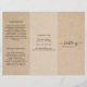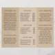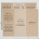 Dépliant rustique à trois volets avec un fond en papier brun faux. La couverture comporte le nom de votre entreprise avec des fioritures dans une police de caractères élégante et manuscrite, ainsi que votre titre ou service. Le panneau arrière contient vos coordonnées et le panneau plié intérieur comporte deux en-têtes et des zones de texte. L'intérieur comprend plusieurs modèles pour les informations sur votre entreprise sur les panneaux extérieurs et une liste de prix dans le panneau central. Ce design simple et féminin est idéal pour une entreprise d'artisanat fait main.