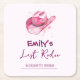 "Célébrez la dernière virée de la future mariée avec ce sous-verre rose Dernier Rodéo Week-end EVJF. Avec son fond rose pastel doux, son texte "Dernier Rodéo" audacieux inspiré de l'Ouest et son graphique de chapeau de cowgirl adorable, ce sous-verre ajoute une touche ludique et pratique à votre décoration de fête. Parfait pour protéger les surfaces tout en gardant l'ambiance de fête !"