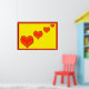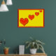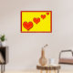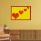 Quatre coeurs rouges heureux sur arrière - plan jaune. Cadre en rouge.