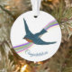Cet ornement de médaille est de féliciter quelqu'un pour un accomplissement. Sur l'avant est un vol d'oiseau bleu devant une représentation artistique d'un arc-en-ciel. Avec le mot "félicitations". Sur le dos est le texte "que vous avez osé, vous avez rêvé, vous avez persévéré, et vous avez accompli". Vous pouvez changer le texte et la couleur d'arrière - plan si vous aimez.