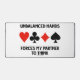 Montrez votre sens de l'humour du pont en double avec ce tapis de bureau avec les quatre costumes de carte ainsi que le dicton "Unbalance Hands Force My Partner To Think". Faites à d'autres une double prise sur la façon dont vous enchérissez et jouez des mains déséquilibrées avec ce tapis de bureau de relais aujourd'hui!