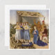 Le bébé Jésus repose sur une couverture devant une cabane pendant que Marie le survole. Dans les musiciens arrière - plans jouent des chansons sur leurs instruments à cordes.