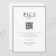 Elégant, moderne, écriture manuscrite, blanc, Mariage "Des photos arrivent !" Carte avec le nom du couple et la date du Mariage, y compris le code QR pour la galerie de photos. Célébrez votre amour et saluez vos invités avec style avec notre carte d'accueil customisée! Cette carte minimale est non seulement une décoration élégante pour votre mariage, mais aussi un gardien interactif qui engage vos invités. Tant de photos sont prises par les clients d'un mariage que le couple n'arrive souvent jamais à voir. Si vous voulez créer une galerie photo où vos invités peuvent télécharger les photos qu'ils ont prises, cette Carte est parfaite pour vous. Il existe de nombreux fournisseurs, comme Dropbox, où vous pouvez créer une galerie en ligne gratuite à l'avance. Ensuite, vous pouvez facilement customiser votre Carte en entrant votre nom, la date et le lien vers votre galerie photo. De cette façon, vous avez quelque chose de vraiment spécial pour votre grand jour.