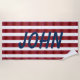 Série, de planches Abstraites, empilées à la forme, bandes larges, dans les teintes de fond, rouge, rose, bleu et noir, contre blanc, arrière - plan-avec votre choix de Monogram, en bleu marine.