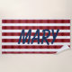 Série, de planches Abstraites, empilées à la forme, bandes larges, dans les teintes de fond, rouge, rose, bleu et noir, contre blanc, arrière - plan-avec votre choix de Monogram, en bleu marine.