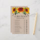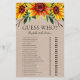 Cette belle feuille de tournesol rustique Guess Who? nuptiale est élégant et charmant - parfait pour tout jardin, botanique, rustique, romantique, floral, formel ou vintage mariage. Son magnifique mélange de gracieux tournesols jaunes multicolores et de verdure feuillue est fleuri, délicat et beau. Ce jeu amusant et facile est sûr d'apporter beaucoup de rire à toute douche nuptiale - et il va briser la glace et faire parler tout le monde. Donnez simplement un drap à chaque invité (n'oubliez pas les stylos) et laissez le plaisir commencer! Vous serez étonné de voir combien de personnes connaissent certaines des réponses, mais d'autres peuvent les bloquer. Pour faire de ce jeu votre propre sélectionnez Personnalisez ce modèle et tapez les noms de la mariée et du marié.