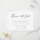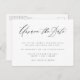 Wowzers ! Nous vivons des moments difficiles ! Ne gèle pas quand les choses vont de côté. Il est temps de pivoter ! Vous aurez besoin d'espace pour vous rassembler, vous adapter et trouver de nouvelles façons de replanifier et peut-être même réinventer votre journée spéciale. Laissez-nous vous aider ! Ces cartes de report d'événement en noir et blanc classique comprennent un message texte fixe dans une police de script stylisée avec une police serif minimale pour votre message. Parfait pour toutes les occasions où vous devez retarder ou reprogrammer. Faites savoir à vos invités que vous avez besoin de reporter l'événement sans perdre votre calme avec ce design classique à feuillage persistant. Ne soyez pas déçus ! Vous avez maintenant le temps de rendre votre nouvelle célébration encore plus comme vous l'avez toujours souhaité ! N'oubliez pas : des événements imprévus se produisent et vos invités comprendront ; -) Si vous avez besoin d'un coup de main, rendez-vous sur Zazzle conversation et nous serons heureux de vous aider ! Tout ira bien !