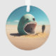 A desert monster house in the shape of a house, in the style of surreal sereal seascapes, photorealistic renderings, light aquamarine and beige, playful character designs