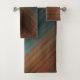 Ensemble de serviettes de bain salle de bain et ameublement de maison accessoire de décoration avec Southwestern Peint Desert dessin de l'image design par TheFabricSeal à Zazzle. Cette magnifique illustration d'art graphique numérique présente une fausse surface en bois peinte à l'aquarelle et à l'aquarelle, avec des bandes horizontales superbes aux couleurs inspirées des déserts du magnifique Sud-Ouest. Couleur palette de tons noir, marron, bordeaux, rouge, rouille, terre cuite, brique, bronzée, sable, bleu turquoise et vert.