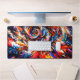 Ce tapis de bureau a un design artistique.