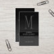 Modèle de design carte de visite professionnel et élégant en noir, gris, argent. Design élégant avec monogramme. Deux côtés.