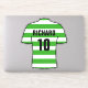 Autocollant de football. Design de maillot de football en Green Hoops. Personnalisé avec votre choix de nom et de numéro. 8 x 8 pouces.
