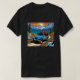 L'image présente une scène dynamique et aventureuse avec un véhicule tout terrain bleu vif qui longe une route de montagne sinueuse. La voiture, équipée de gros pneus et d'un porte-toit tenant des lumières rouges, a un look robuste et sportif, parfait pour explorer des terrains accidentés. L'arrière - plan présente un paysage époustouflant de montagnes enneigées, un soleil couchant derrière les sommets, et un ciel coloré dans les tons orange, violet et rose. Des pins et des terrains rocheux encadrent la route, ce qui renforce le sens de l'aventure et de l'exploration. L'ensemble est décoré dans un style animé et dynamique, ce qui en fait un T-shirt qui reflète l'esprit des voyages, des aventures en plein air et de l'exploration. Ce design séduira ceux qui aiment le frisson de la route ouverte et la beauté de la nature.