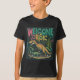 Un design vibrant et coloré avec l'emblématique phrase de Jurassic Park dans un arc-en-ciel de couleurs. Le feuillage préhistorique et les empreintes de dinosaures entourent le texte, créant un sentiment d'aventure et d'excitation.
