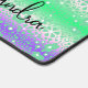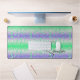 Tapis de bureau blanc ciré réalisé dans un design abstrait floral vert et bleu. Personnalisez le nom au bas du tapis, pour répondre à vos besoins. Super idée cadeau pour elle.
