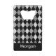 Un superbe ouvre-bouteille, ce design présente un motif géométrique en forme de losange noir et gris. Il y a un endroit pour customiser son nom en bas. Oeuvre créée par : AMBillustrations http://www.etsy.com/shop/AMBillustrations/